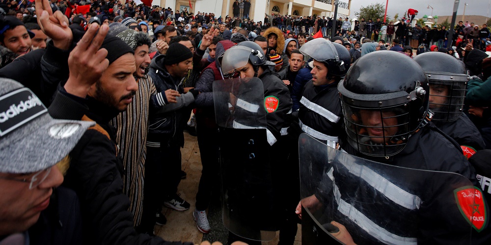 Depuis la mi-décembre, Jerada, la ville berceau du syndicalisme marocain, connaît des manifestations quasi-quotidiennes avec à chaque fois de nouvelles formes de protestation (visages teints en noir, bouches couvertes, pain noir…). Le mouvement social s’est structuré autour des jeunes des quartiers sans encadrement politique ou associatif. Malgré la visite du ministre de l’Energie et des Mines, Aziz Rebbah, début janvier, pour dialoguer avec les manifestants, la tension ne faiblit pas. Jerada comme le Rif sont symptomatiques de la colère politico-sociale qui couve au Maroc. Une colère tellement forte qu’elle peut emporter à tout moment le makhzen.